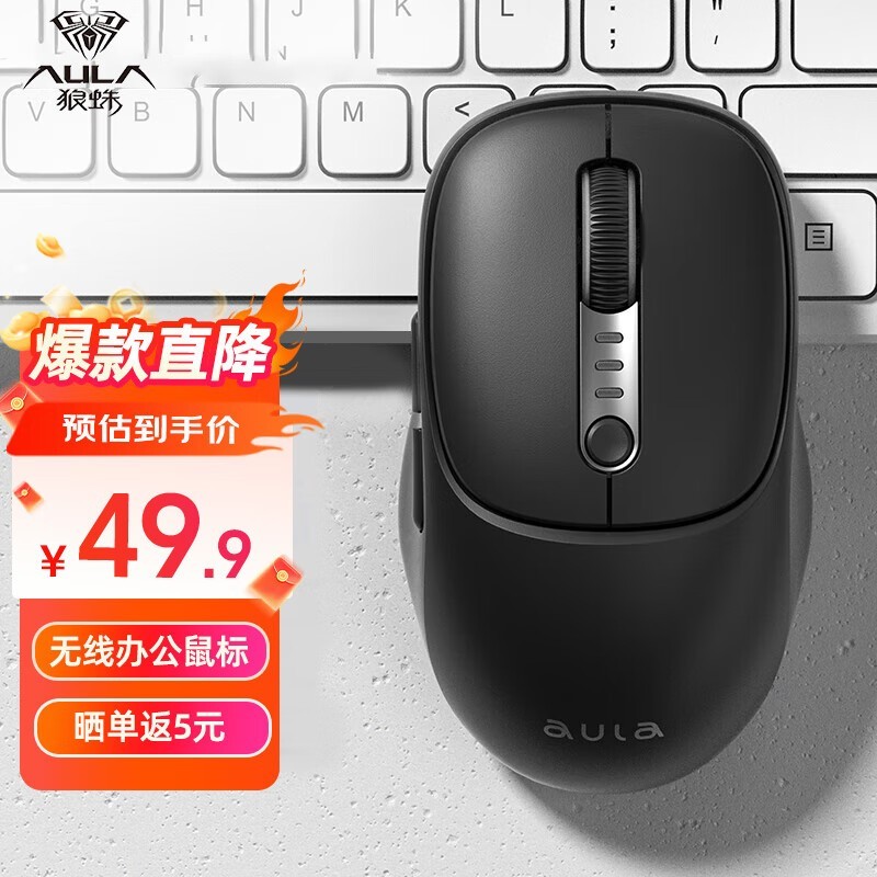 双十一下程AULA狼蛛无线鼠标到手20.06元