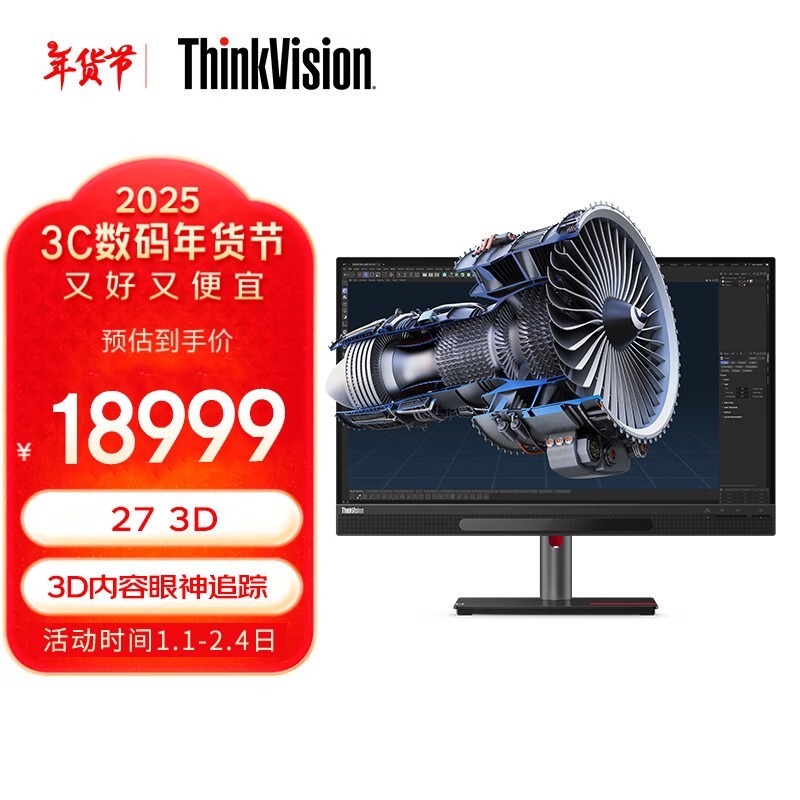 联想ThinkVision 27英寸3D显示器仅售18999元!