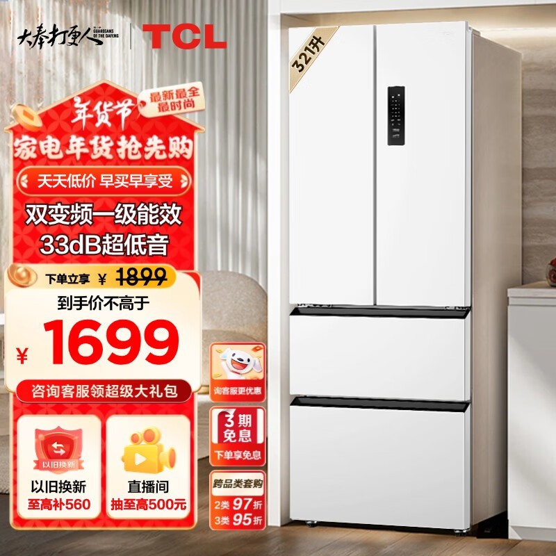 TCL R321V5-D 法式多门冰箱 1669元到手