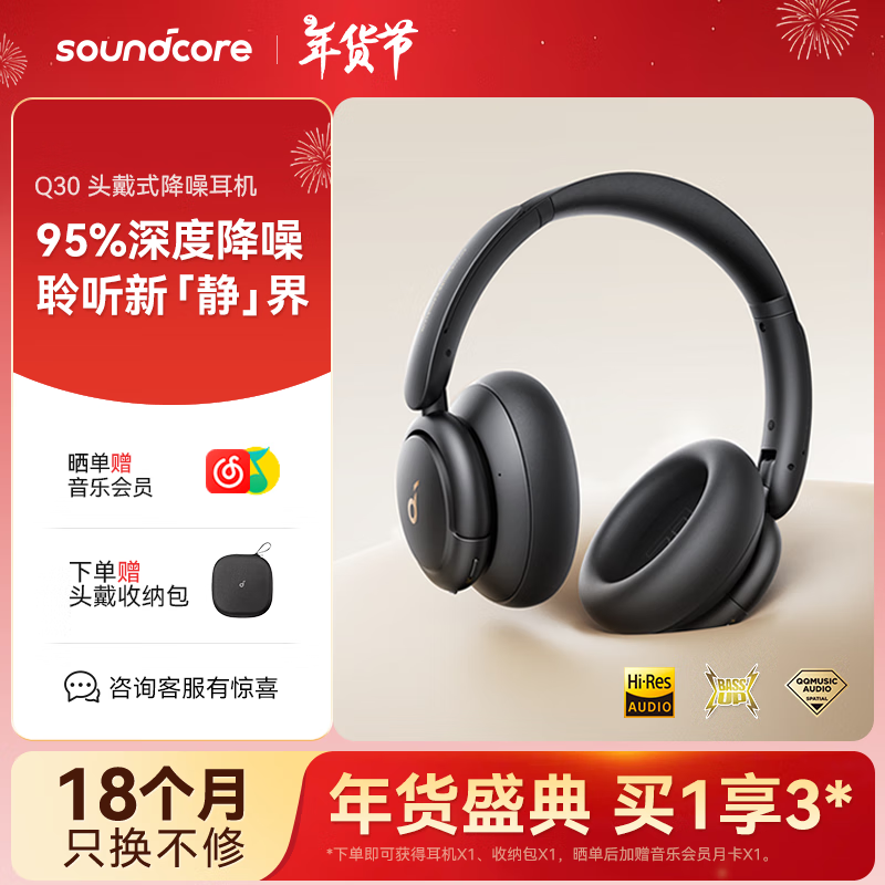 声阔Q30头戴降噪蓝牙耳机仅411元 还包邮