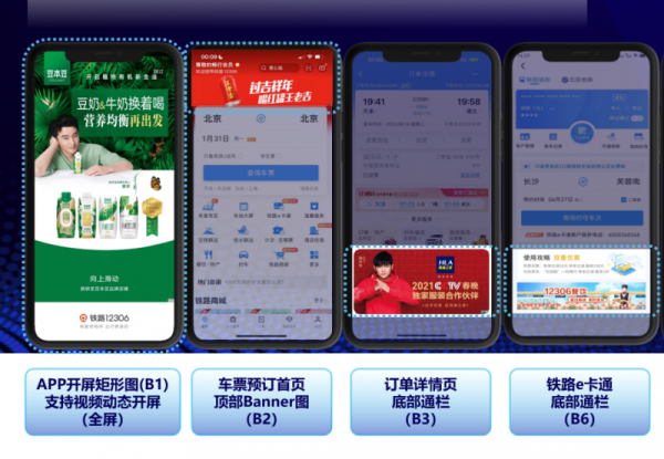 铁路12306 APP是中国铁路唯一官方互联网售票系统,是全球访问量最高的APP。注册用户量超8亿,日均活跃用户数2000万+,日峰值访问量达500多亿次,是日化洗护、家清用品、食品饮料、金融等国计民生行业品牌必抢占的优质广告渠道。