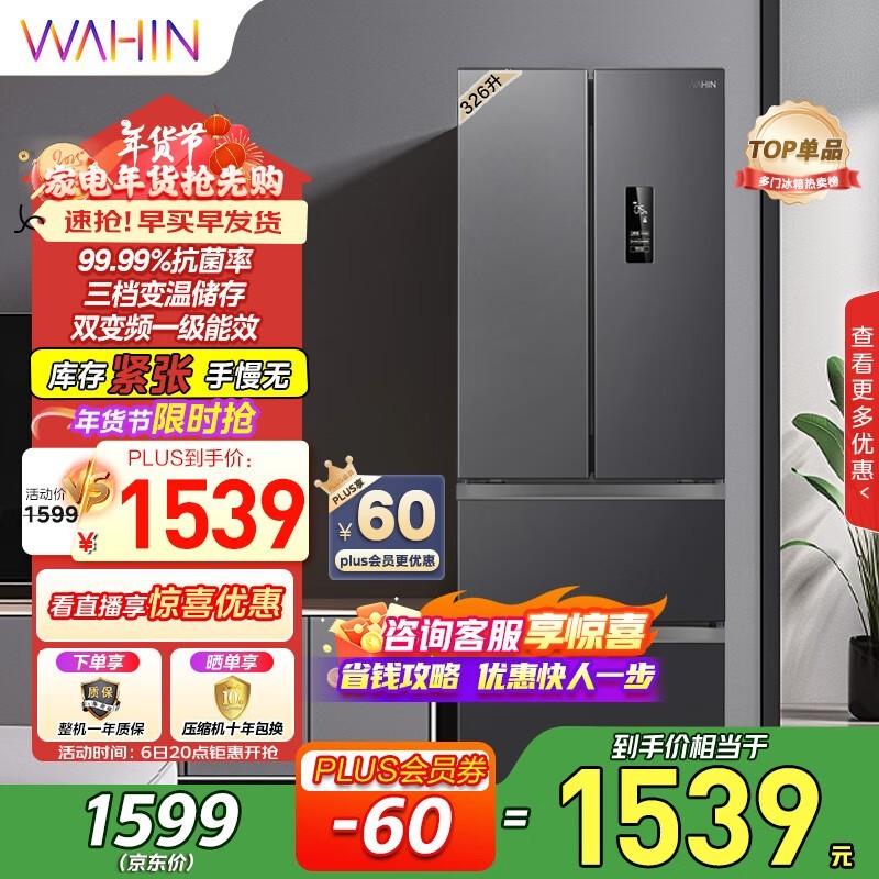 华凌BCD-326WFPH 风冷多门冰箱 一级能效 双变频技术 1231入手