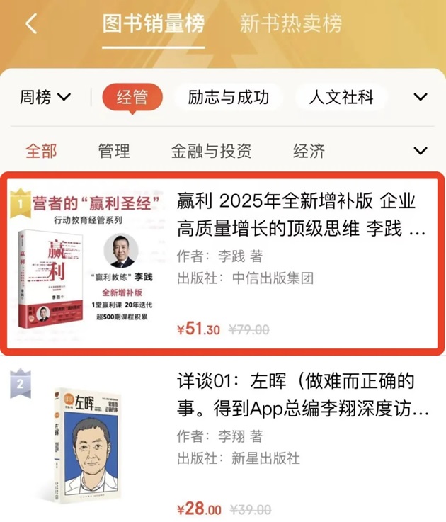 新版《赢利》登榜京东图书“新书日榜”“图书总榜日榜”“经管周榜”第一