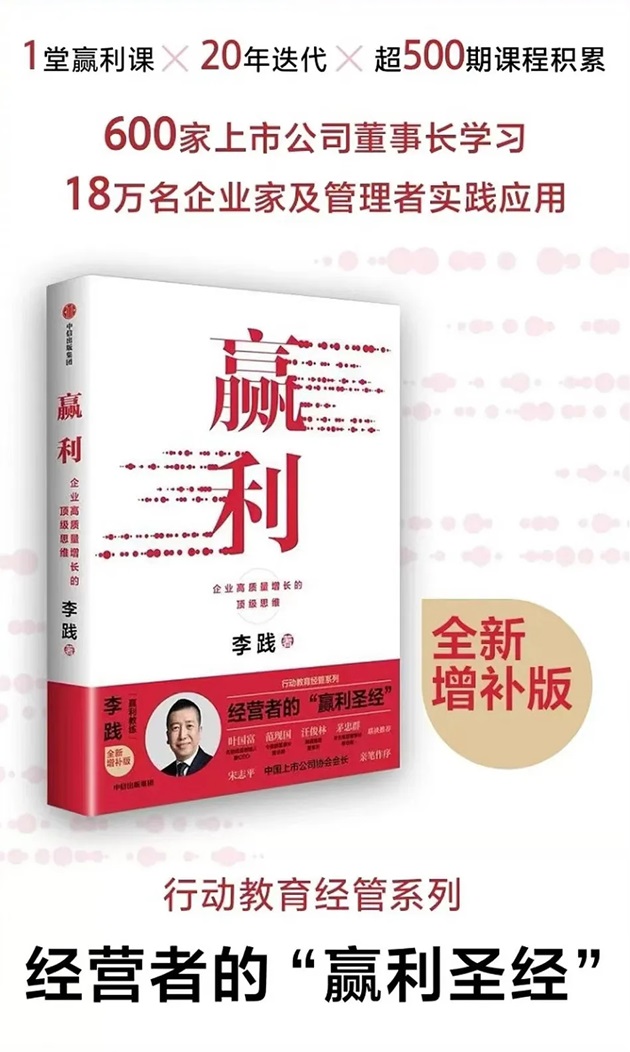 新版《赢利》全新升级,加码作者行动教育董事长兼CEO李践老师近3年的所思所悟,一上市便斩获各类书籍榜单第一,并被誉为:经营者的“赢利圣经”。