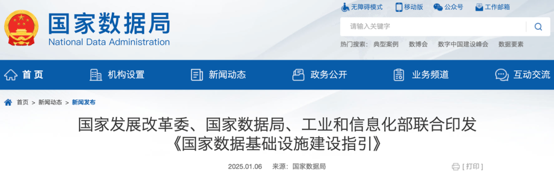 C114讯 1月6日消息(南山)据国家数据局官网,近日,国家发展改革委、国家数据局、工业和信息化部联合印发《国家数据基础设施建设指引》(以下简称《指引》)。