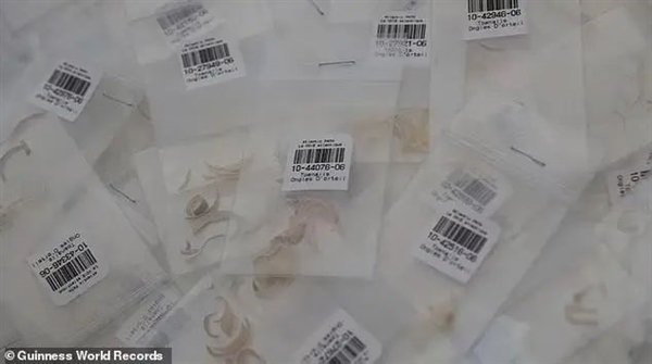 数量之最,截止到现在,已经收集了超过30000人,总共25万片指甲,目前数量还在上涨,已被载入吉尼斯世界纪录;
