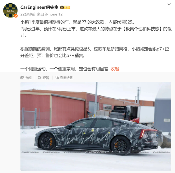 小鹏P7i大改款预计将于3月上市 设计极具个性和科技感