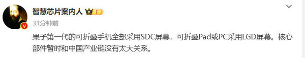 近日,CNMO注意到,有爆料人士透露,苹果第一代的可折叠屏手机将全部采用来自SDC(三星)的苹果,而可折叠的iPad或PC则将采用LGD(LG)的屏幕值得注意的是,三星和LG均为韩国企业,这意味着苹果折叠屏产品的核心部件在现阶段并未过多依赖中国产业链。