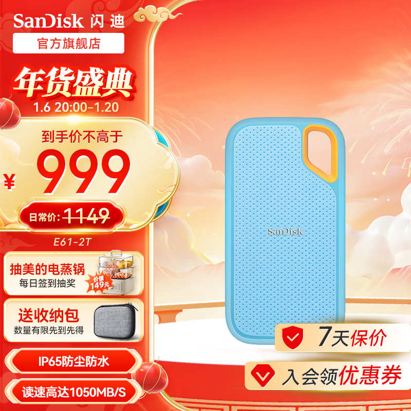 闪迪E61卓越版移动固态硬盘 979元限时特惠!
