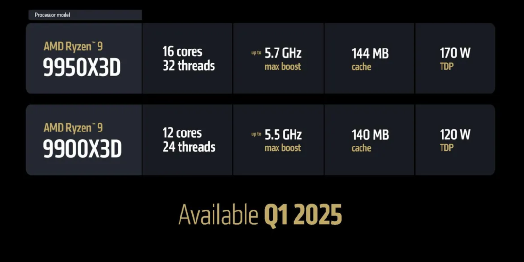 AMD 还将推出一款新的 Ryzen 9 9900X3D,它配备 12 核和 24 线程,搭配 128MB 的 L3 缓存。