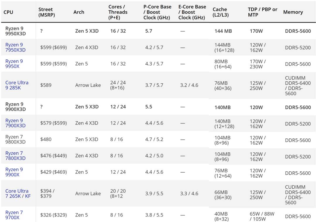 https://www.tomshardware.com/pc-components/cpus/amd-launches-ryzen-9-9950x3d-and-9900x3d-claims-20-percent-faster-gaming-performance-than-intels-flagship-arrow-lake-processors