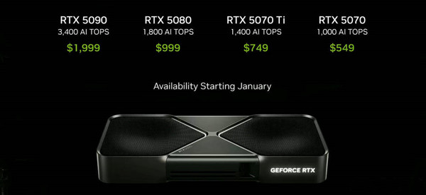 英伟达发布RTX 50系显卡 549美元起 最贵1999美元