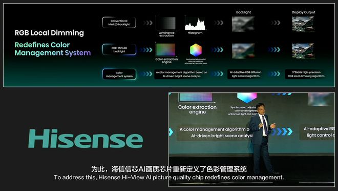1 月 7 日消息,北京时间 1 月 7 日早晨(美国当地时间 1 月 6 日),CES 2025 展会开幕前,海信举办了显示技术发布会,并全球首发 RGB 三维控色液晶显示技术及全新一代信芯 AI 画质芯片。