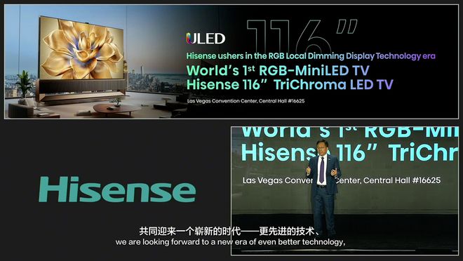 在接下来的 CES 2025 大会上,海信将发布全球首台 116 吋 RGB - Mini LED 电视,这也是 RGB - Mini LED 作为 RGB 三维控色液晶显示技术在液晶电视行业的首次应用。