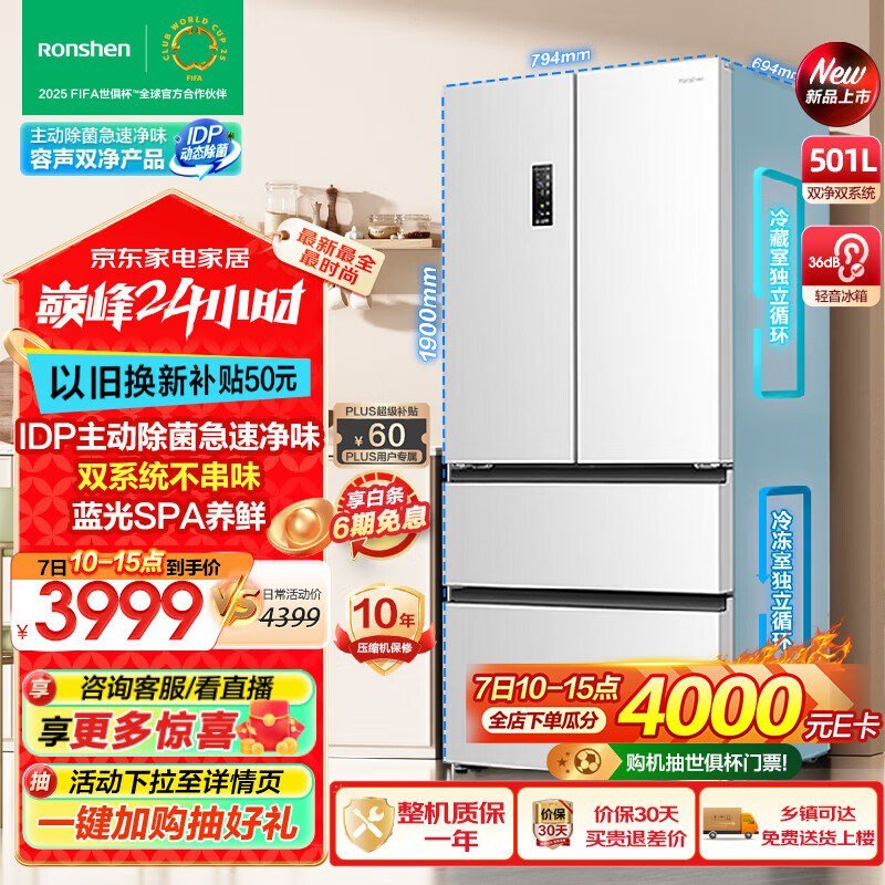 容声IDP双净501Pro冰箱 一级能效节能省电 节能环保