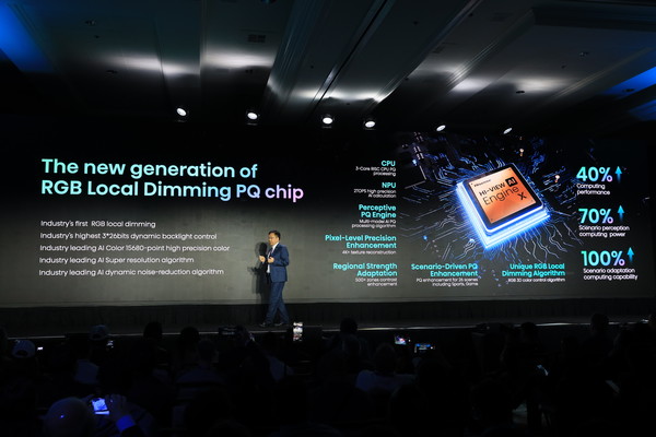 该电视同时搭载了海信自主研发的最新一代信芯AI画质芯片,这是全球首款RGB光色同控画质芯片。它解决了光色同控的难题,感知场景计算能力也增强了70%,支持更复杂的高精度控色需求。此外,海信还开发了一套RGB三维控色芯片控制系统,确保背光数据极速传输,达到背光与图像的极限同步。
