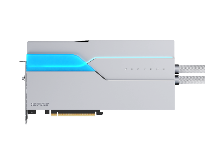 iGame GeForce RTX 50系列的水冷旗舰Neptune同样有着重大变化,被玩家称为水神的Neptune是专对散热效能有着严苛要求的硬核玩家所准备的水冷装备。全新Neptune延续备受好评的银白外甲设计,并打造了与前代产品完全不同的流线型线条。其优雅流淌的形态宛如地球的生命源泉,赋予产品生动而流动的美感,配合“流动RGB”将展现美妙绝伦的光影盛宴。新增的设计结构“深海冰晶”则为本代新品整体设计的点睛之笔,一抹清新的冰蓝点缀于银白外甲之上,即展现了水流般的动感,又融合了冰晶般的静谧。