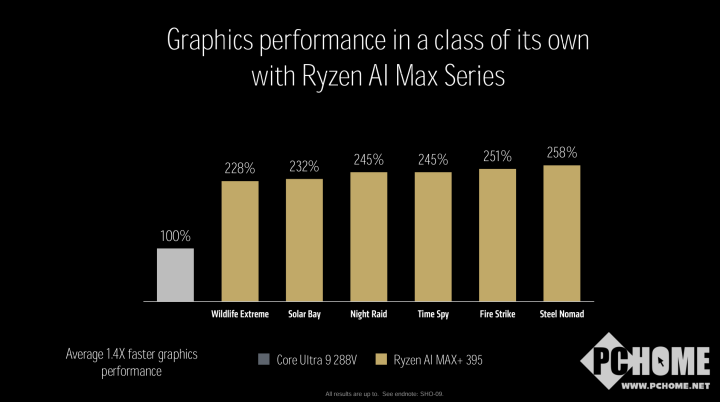 显卡性能上,锐龙AI Max+ 395性能是Ultra 9 288V的1.4倍,但并没有放出实际游戏的表现,但这样的理论性能表现也并不能让人满意。不过显然这样的错位对比并不能说明什么,但英特尔的最新一代移动处理器也确实尚未发布。