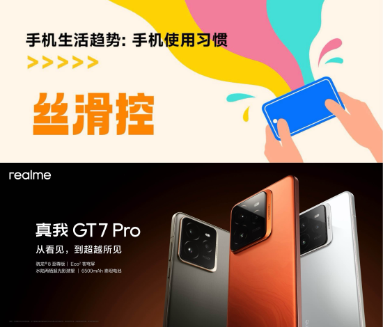 在手机使用习惯维度下,“丝滑控”一词揭露了“智能机原住民”们的原生需求,年轻人无法容忍任何形式的卡顿或不流畅的操作体验。真我GT7 Pro便是极致丝滑的代表,无论是骁龙8至尊版的性能调教,还是精心打磨的realme UI 6.0系统,从屏幕解锁到应用切换、从打游戏到日常操作,每一秒都纵享丝滑、秒级反馈。