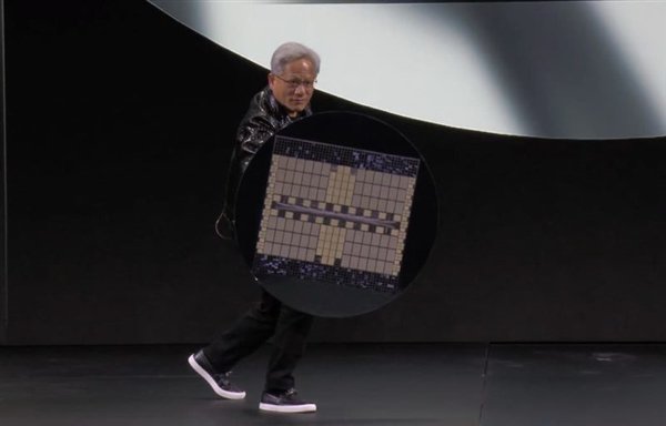 黄仁勋介绍,这款超大晶圆有72 Blackwell GPU、2,592个CPU核心,配备14TB的576个HBM内存芯片,总共有超过130万亿晶体管。