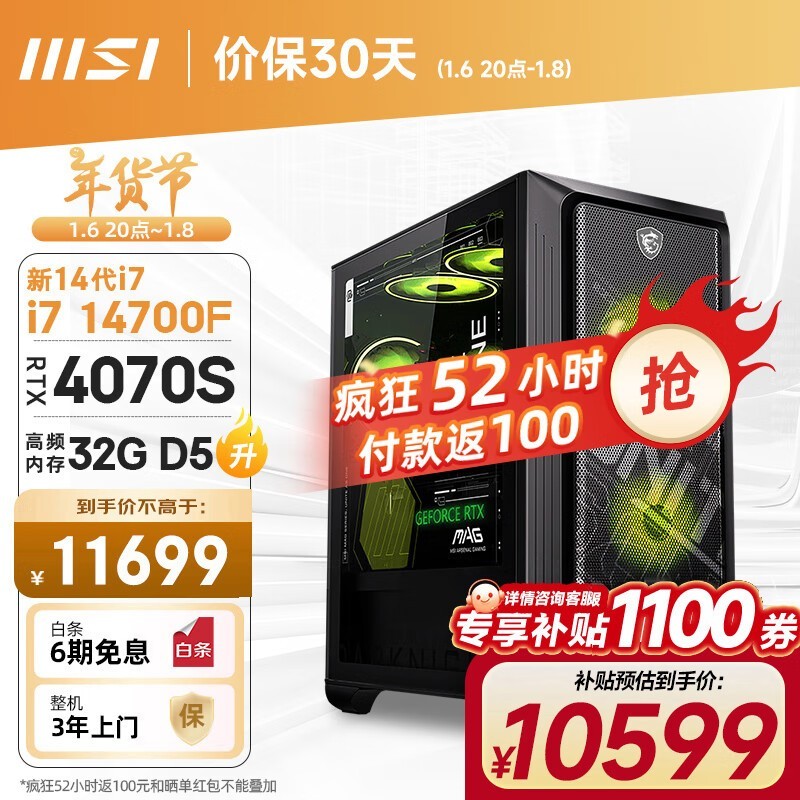微星暗黑骑士电脑主机爆降100元,到手价仅10599元!