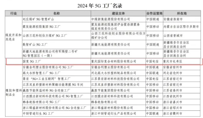 在当今科技飞速发展的时代,工业领域的数字化变革正深刻重塑着产业格局。近日,云天化国际复材携手中国电信打造的“国复5G工厂”成功入选成功入选工信部《2024年5G工厂名录》,无疑成为行业瞩目的焦点,这一殊荣不仅是对企业创新实践的高度认可,更开启了其智能化发展的崭新篇章。