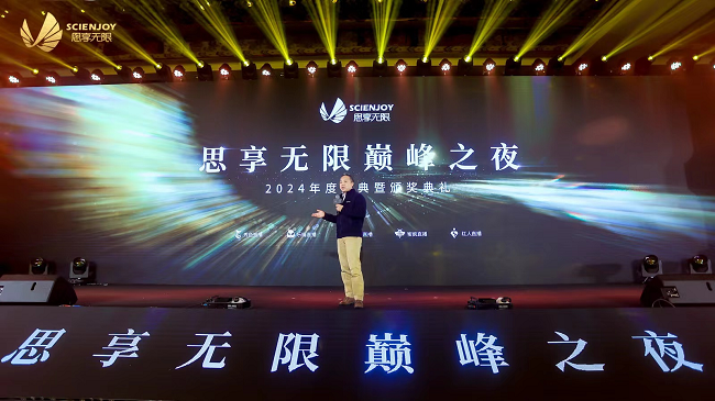 在年度盛典巅峰之夜晚会上,思享无限CEO何晓武亮相现场,就思享无限业务布局和行业发展进行分享演讲。