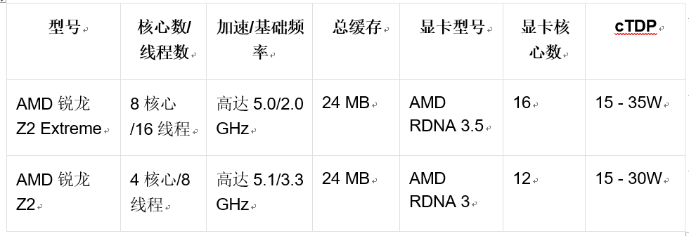 锐龙Z2系列手持游戏设备处理器