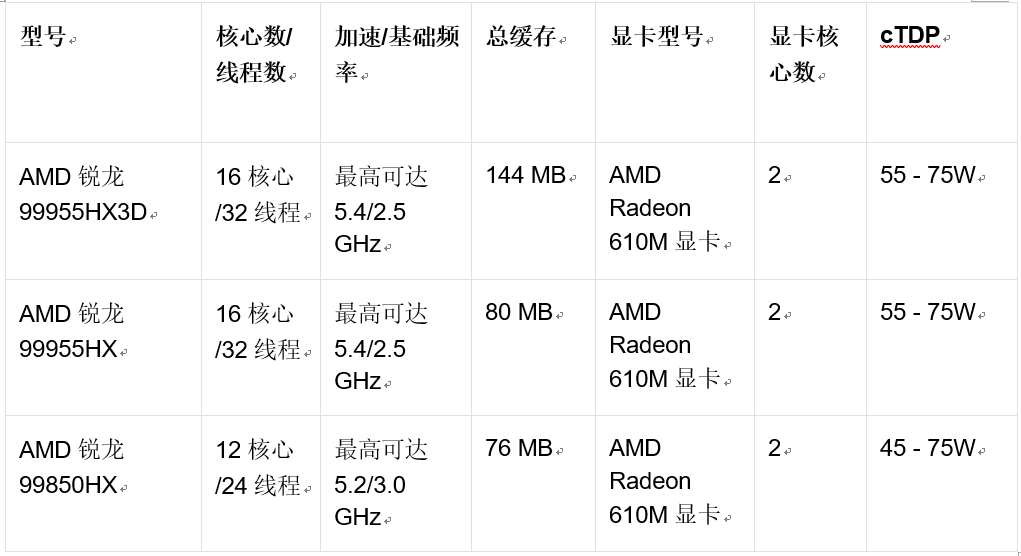 面向移动笔记本的锐龙9000HX系列处理器
