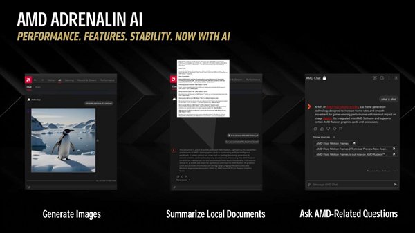 此外,AMD还推出了Adrenalin AI应用,支持图片生成、本地文档归纳以及AMD相关问题检索。