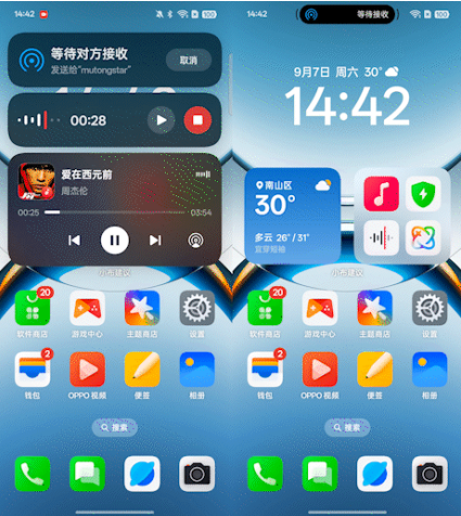 至于“流体云”,早在ColorOS 14时期它就已经和用户见面,而ColorOS 15中,“流体云”的位置从屏幕左上角平移至屏幕顶部前摄区域,与前摄挖孔融合为一体,跟iOS的灵动岛有几分神似,操作逻辑上稍显不同,当在ColorOS流体云胶囊状态下,点击后展开的是详情卡片,并非进入APP,相较iOS灵动岛完全相反的操作个人认为更符合逻辑,当然ColorOS作为细节狂魔,将点击对应展开卡片或是进入APP的自定义权交给了用户。