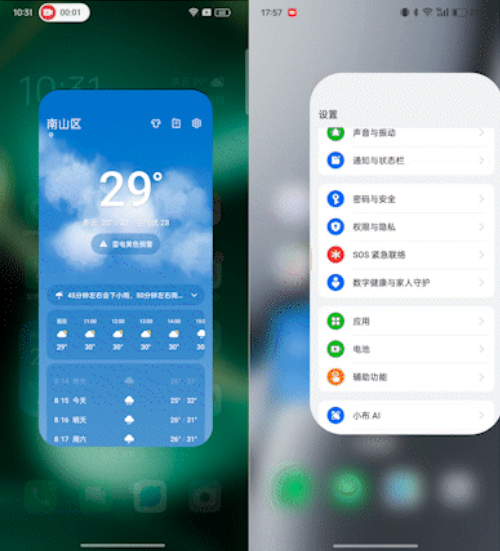 APP浮窗场景的动效,竟也被ColorOS 15涵盖在自己的流畅计划之内,当把APP切换为悬浮小窗时,再拖动其靠近屏幕边缘,小窗APP会很连贯地缩小成图标,肉眼会察觉到一种吸附感,并同步带有手机马达传来的震动反馈,将此APP连续来回拖拽也不会出现卡顿现象。