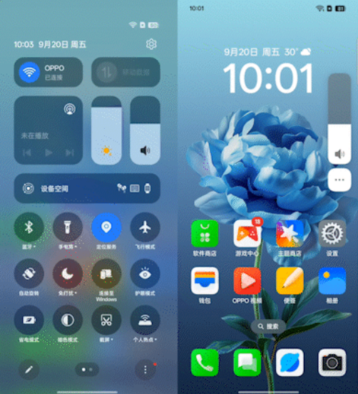 上述极限触底的拉伸回弹效果,也延申至系统的其余角落中,例如在调节桌面音量条、控制中心亮度条、音量条时,也不难发现类似动效,使用过iOS系统的朋友,可能会有一种熟悉感,因此Find X8被称之为”OPhone“,可不仅仅是ID设计相像这么简单。