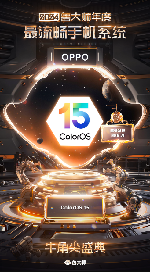 2025年1月6日,鲁大师“2024牛角尖年终颁奖盛典”正式开幕,包含电脑、手机、电动单车、新能源车四大板块,共15个奖项冠军逐一揭晓。其中,标榜着系统流畅度顶尖水平的2024“年度最流畅手机系统”大奖,被来自绿厂ColorOS 15收入囊中,它在全场景动画效果上展现出了令人难以置信的丝滑体验。