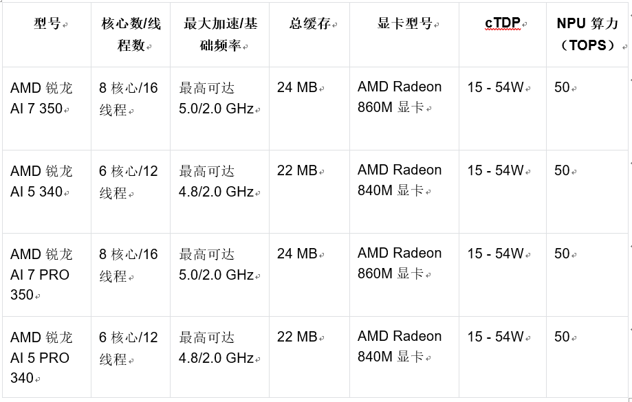 AMD锐龙AI300和锐龙AI300 PRO系列处理器
