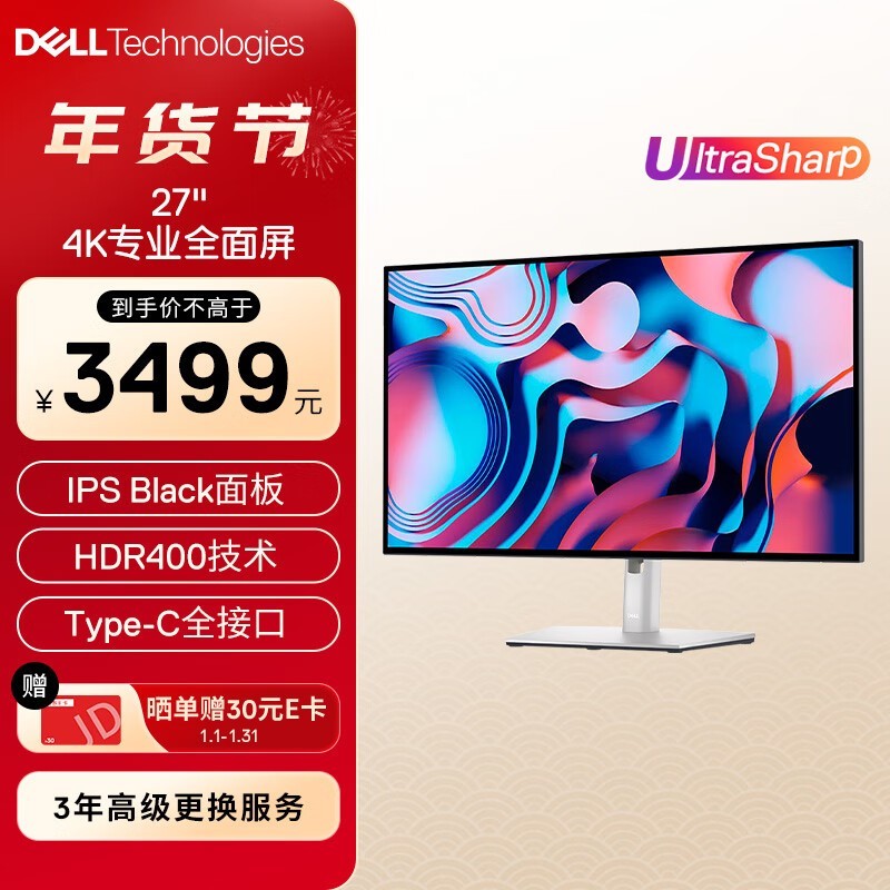 DELL 戴尔 UltraSharp 27英寸 4K显示器 活动优惠价2675元