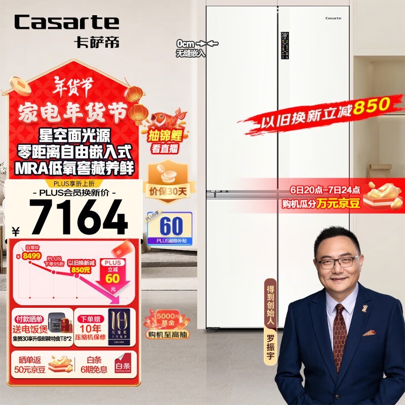 卡萨帝揽光系列零间隙自由嵌入式冰箱507L到手价5173