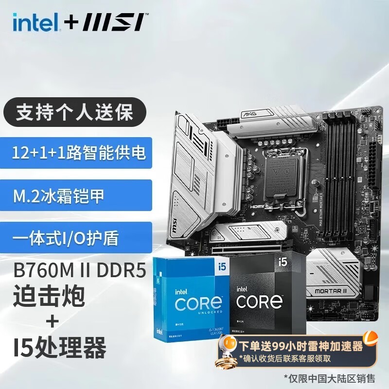 微星B760主板和英特尔酷睿i5处理器套装限时促销1949元