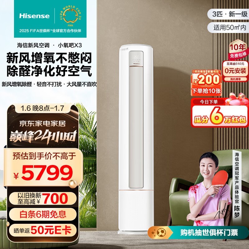 海信KFR-72LW/X300J-X1新一级能效立柜空调3匹到手价4258元