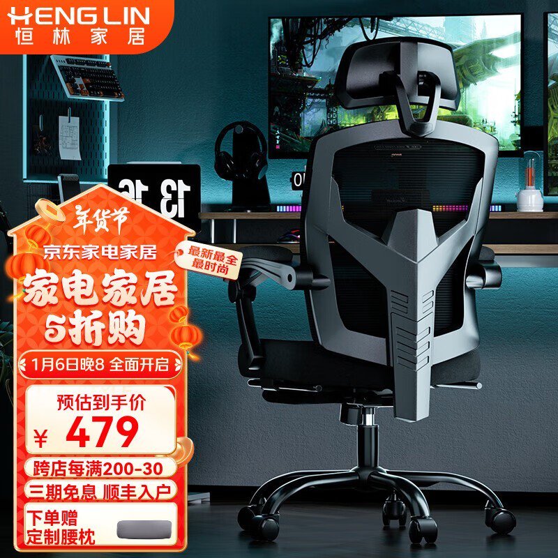 恒林家居人体工学电脑椅到手价479元