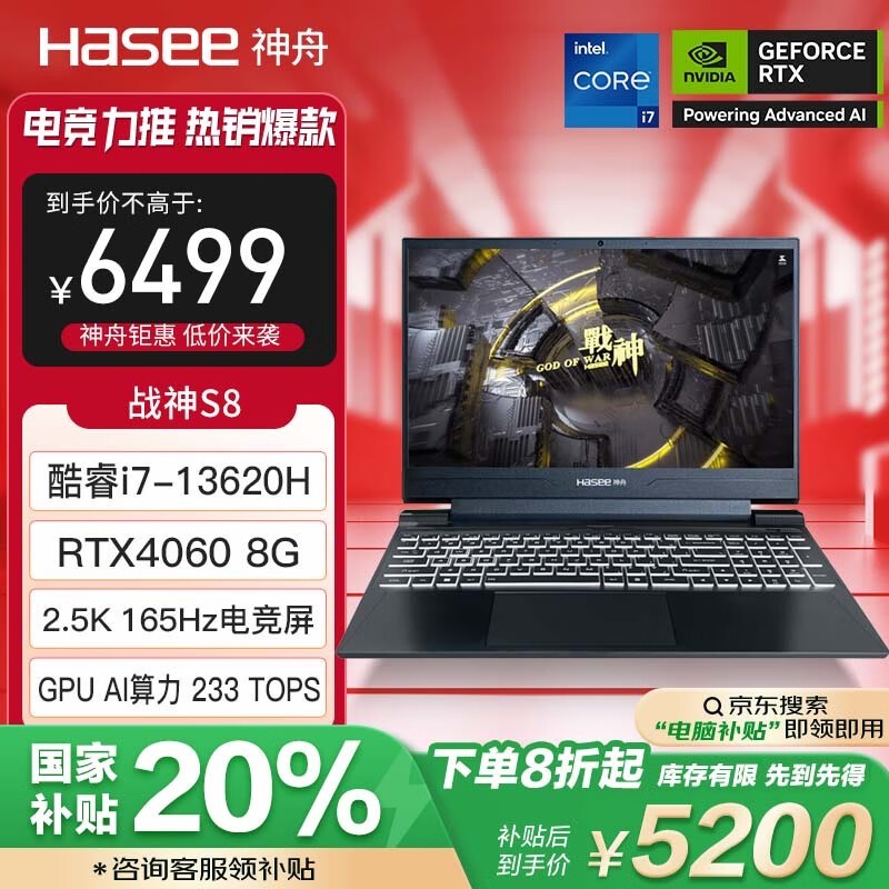 神舟战神S8笔记本电脑限时优惠 5173元到手