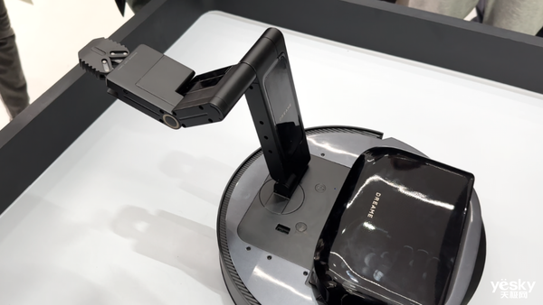 先从外形来看,扫地机器人上方便采用了敞篷跑车的篷顶设计,里面隐藏着一个能达到成年人臂长的一半、大约30cm的机械手,这个仿生机械手拥有5个自由度,模拟了人的“肩、肘、手腕、手指”四个核心关节的活动,摆动起来犹如人手一样灵活,还能夹取约6cm直径、400g以内的物品,看看这折叠的手,真的是又丝滑且科技感十足,怎么折都有面。
