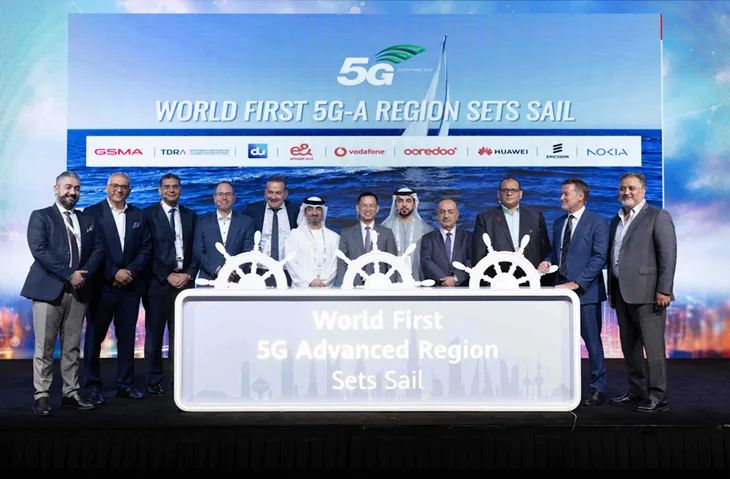 值得一提的是,在12月的Telecom Review领袖峰会上,GSMA、阿联酋电信和数字政府监管局(TDRA)、阿联酋du、阿联酋e&、卡塔尔沃达丰、阿曼沃达丰、卡塔尔Ooredoo、华为、爱立信、诺基亚等权威行业组织、监管部门和领先运营商、设备商的专家代表们共同点亮“全球首个5G-A区域启航(World First 5G-Advanced Region Sets Sail)”,宣告了中东5G-A时代的全面开启。