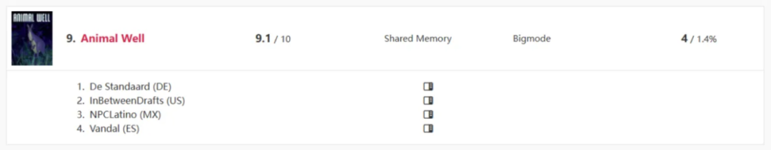 相比之下,2024年的另一部爆款独立游戏《动物井》的境遇明显要惨淡得多。尽管两部作品的媒体评分和玩家口碑不分上下,但《动物井》却只当选了4家媒体的年度游戏,也难怪许多喜欢《动物井》的玩家都在抱怨,去年独立游戏界的风头全被《小丑牌》抢走了。