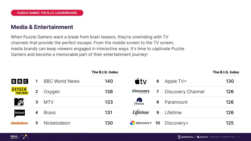当益智游戏玩家想要从脑筋急转弯中解脱出来时,他们会选择电视频道,这是一个完美的解脱方式。从手机屏幕到电视屏幕,媒体品牌可以通过这种互动的方式吸引观众。