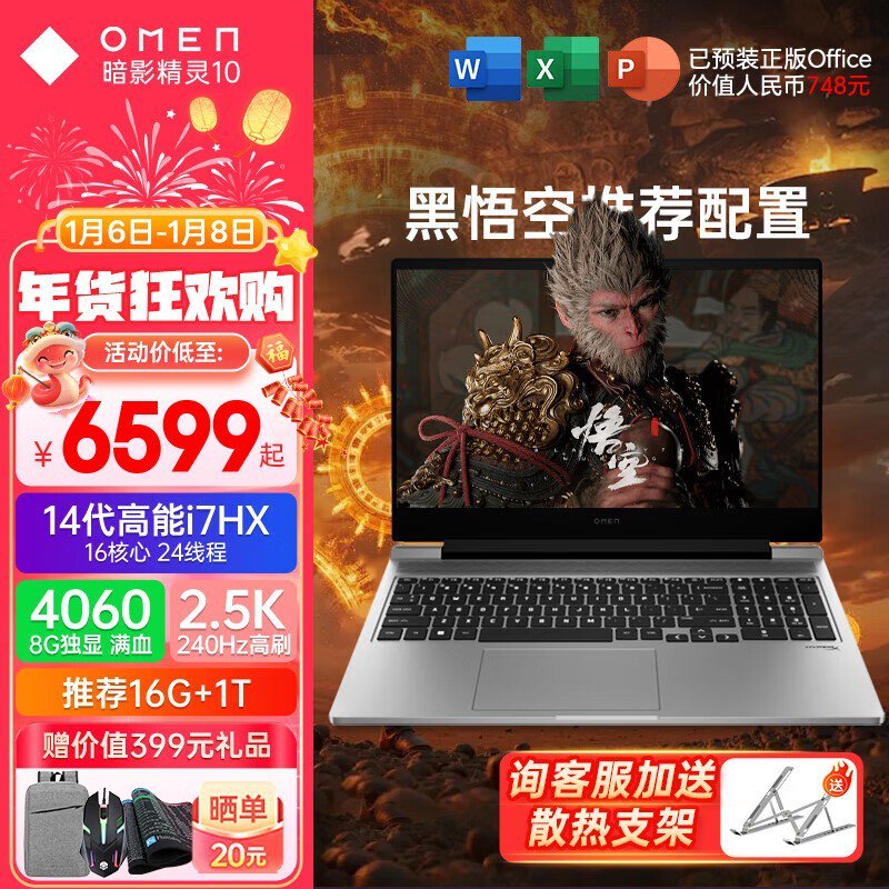惠普暗影精灵10电竞笔记本电脑优惠来袭!仅6799元!