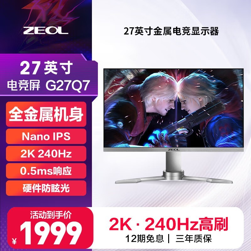ZEOL卓尔G27Q7显示器到手价1999元