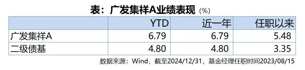 自2023年8月15日至2024年末,广发集祥的区间累计回报为5.48%,同期二级债基指数回报为3.35%,沪深300指数回报为2.05%,整体回报能力还是很不错的。