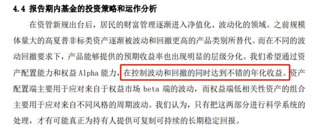 “通过资产配置能力和权益Alpha能力,在控制波动和回撤的同时达到不错的年化收益。”