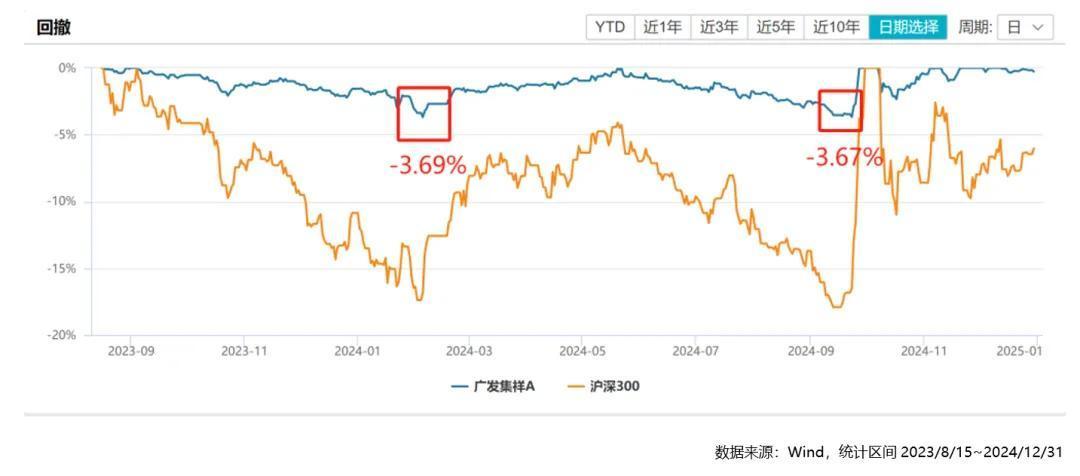 2024年,股市出现了几次比较大的波动,这也对广发集祥的运作提出了考验,在波动加大的市场环境中,广发集祥的净值回撤表现如何呢?